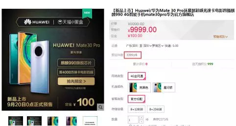 天猫京东Mate30系列预售火热