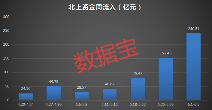 本周A股各主要指数创出3月底反弹以来的新高,而且成交量明显放大,沪指一周累计上涨2.75%。北上资金本周净买入240.51亿元,刷新近七周净流入金额,流入金额连续四周放大。其中沪股通净买入118.58亿元,深股通净买入121.94亿元。