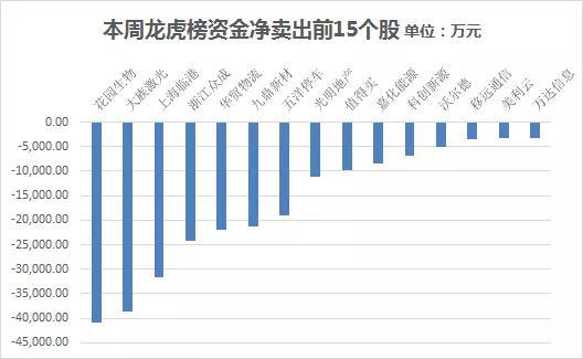 个股龙虎榜净卖出金额居前的15只个股分别为: