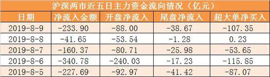 本周两市主力资金累计净流出1004.39亿元。其中周五(8月9日)主力资金开盘净流出88亿元,尾盘净流出38.67亿元,全天净流出233.90亿元。