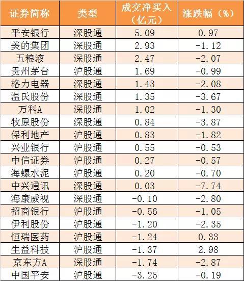 (注:此表为主力资金净流入统计,与上一表格及下一表格中统计口径均不同)