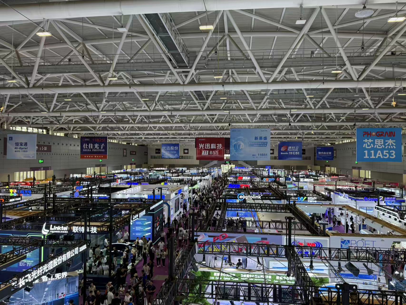 此次光博会,新易盛(300502.SZ)、光迅科技(002281.SZ)、剑桥科技(603083.SH)、仕佳光子(688313.SH)、长飞光纤(601869.SH)、亨通光电(600487.SH)、烽火通信(600498.SH)、凌云光(688400.SH)、灿勤科技(688182.SH)、三环集团(300408.SZ)、锐捷网络(301165.SZ)、特发信息(000070.SZ)、兆龙互连(300913.SZ)、景旺电子(603228.SH)等上市公司均亮相,中际旭创(300308.SZ)旗下智禾光通、华工科技(000988.SZ)旗下华工正源、立讯精密(002475.SZ)子公司立讯技术、已向港交所递交招股书的“海信系”纳真科技、华为海思等也悉数参展,中际旭创还在光博会期间举办了投资者开放日活动。