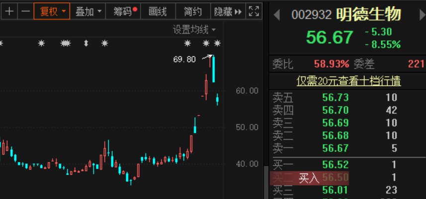 明德生物在上周五跌停的基础上,今日早盘也一度跌停,半日换手率超过20%。明德生物早前一度6日4涨停,短期内大涨逾60%。