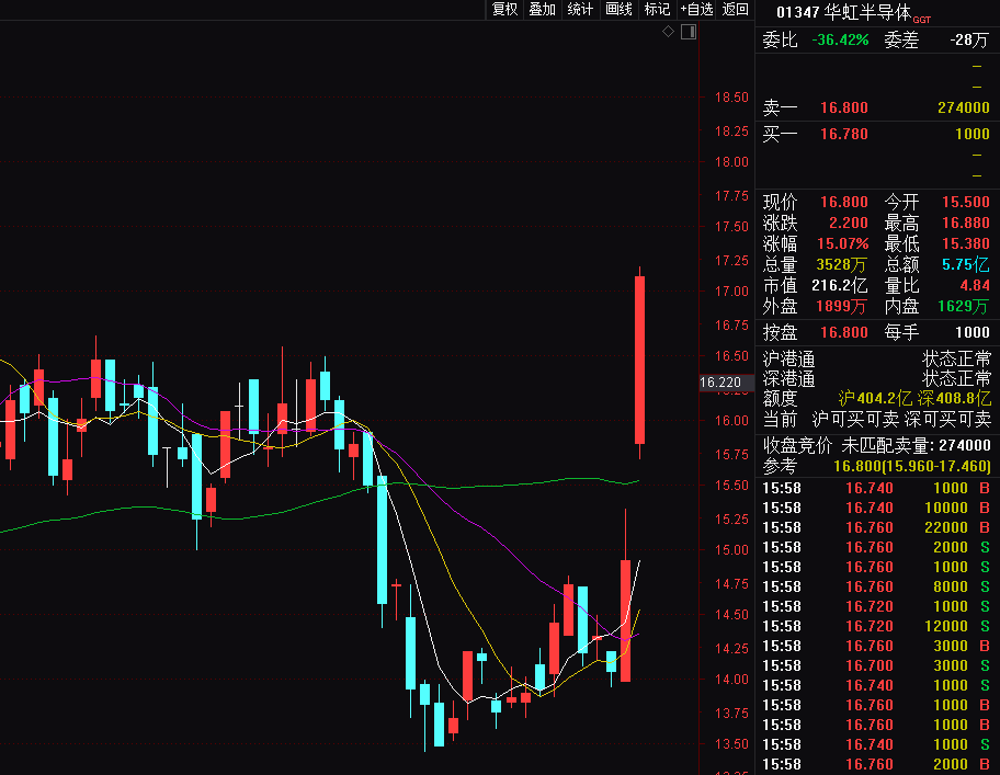除了固定资产指标方面回升,日前在制造端也传出台积电、联电、中芯国际等8英寸晶圆产能吃紧消息。市场面上,港股中芯国际连续两日放量上涨,华虹半导体更是大幅开涨,截至12月5日收盘上涨15.07%收于16.8港元/股。