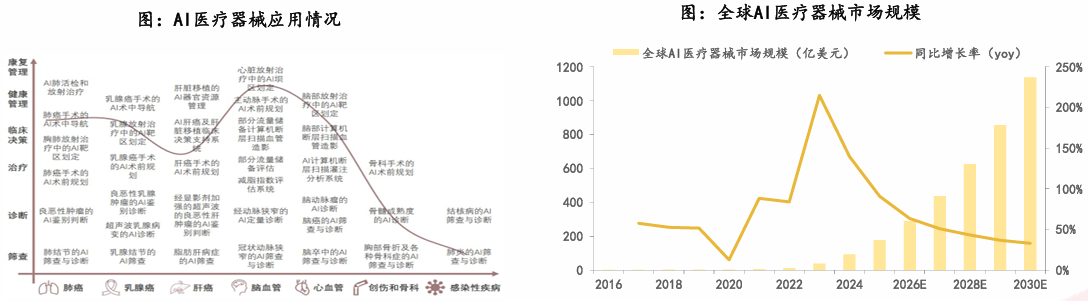 图:AI医疗器械应用情况 图:全球AI医疗器械市场规模 |
