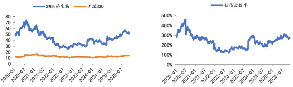 图:SW医药生物/沪深300市盈率走势 图:SW医药生物相对沪深300的估值溢价 |