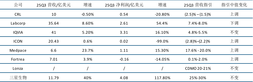 表:海外CXO公司业绩及指引变化 |