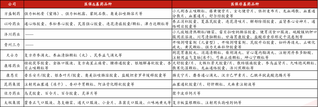 表:部分中药公司医保及基药品种梳理 |