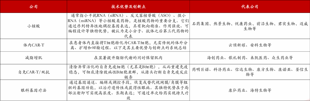 肿瘤领域重磅授权之余,其他领域新的创新药技术突破值得关注。考虑到肿瘤领域中短期格局已初步稳定,短期很难有颠覆ADC及PD-1 plus产品的新技术出现,我们预计未来更多的BD交易有望从其他新的技术路径诞生,例如小核酸、体内CAR-T、减脂增肌、自免双抗/CAR-T、眼科基因疗法等。