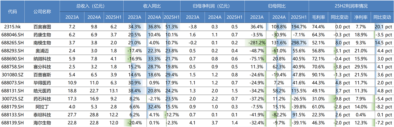 受益于创新产业趋势和投融资的回暖,产业链景气度传导依次验证,从最早端药物发现相关的百普赛斯等,到药理药效相关的百奥赛图、药康生物,大部分公司利润率有所提升,反应行业内卷缓解,供给端格局有所改善。