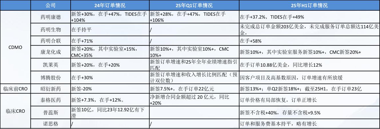 表:部分CRO/CDMO公司订单情况 |
