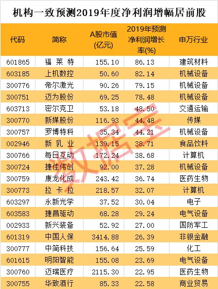 不少机构对迈瑞医疗2019年度业绩进行了展望,数据显示,机构一致预测迈瑞医疗2019年度净利润均值为45.73亿元,同比增长22.95%。事实上,除迈瑞医疗外,还有多只次新股2019年度业绩得到券商机构的看好。数据宝统计显示,根据3家以上机构一致预测的结果,近一年上市的次新股中,有13只2019年度净利润增幅有望达到30%以上。
