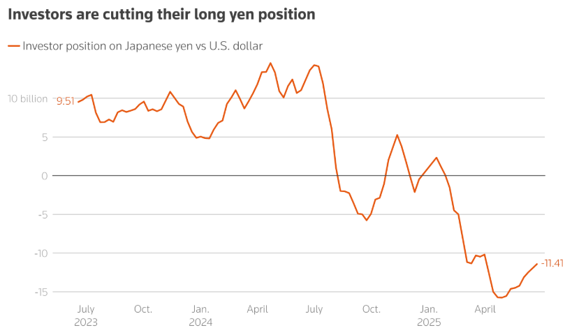 全球投资者正在逐步结束对日元大幅升值的押注,因为日本央行态度谨慎、贸易战持续以及持有日元的成本过高,这些因素使这一今年最热门的交易变得不那么有利可图。虽然大多数分析师和实盘投资者仍坚信,随着日本逐步摆脱超低利率政策,日元最终会升值。但与此信念相悖的是,短期内存在诸多不利因素,包括与美国的贸易协议进展缓慢以及日本全国大选的不确定性。
