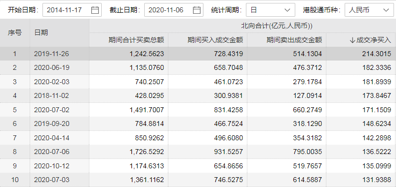 第二,北向资金净流入196.99亿元,为沪股通开通以来第二高水平。