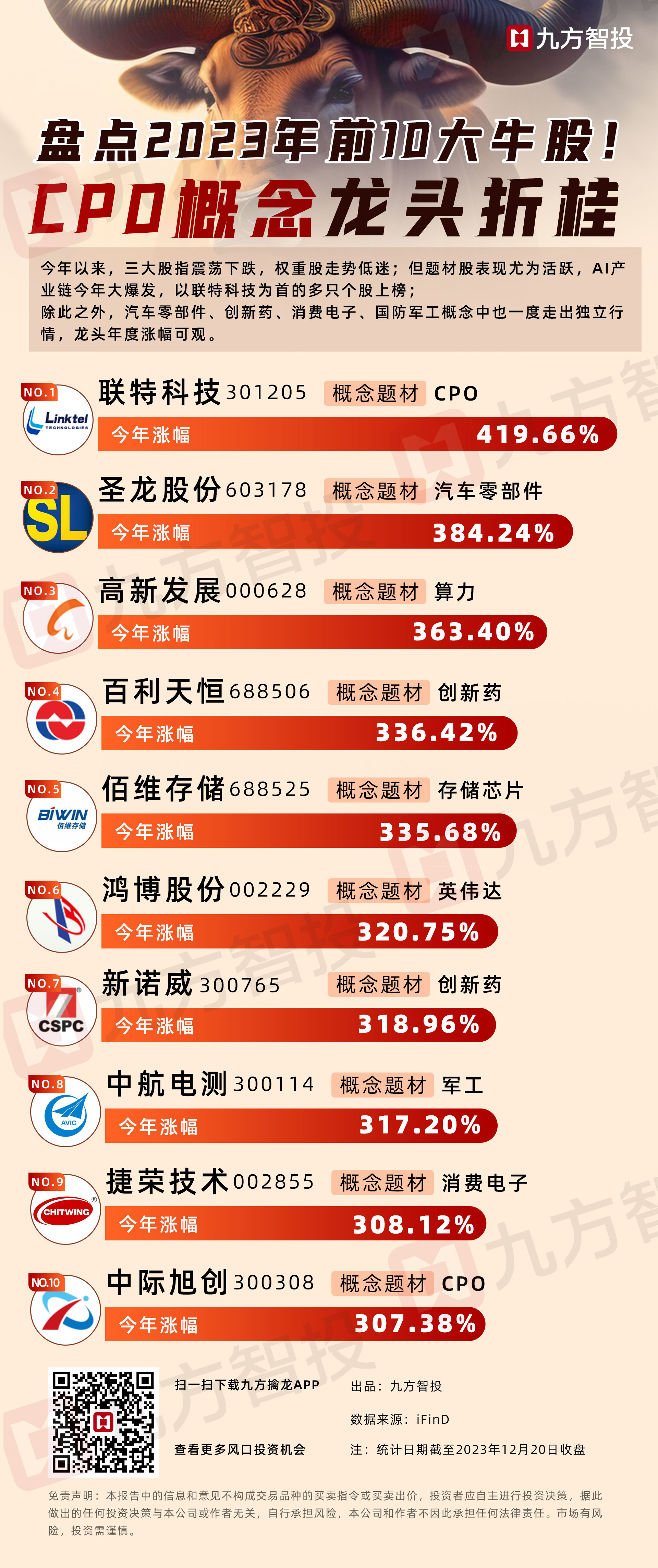 图说A股|盘点2023年前10大牛股!CPO概念龙头折桂
