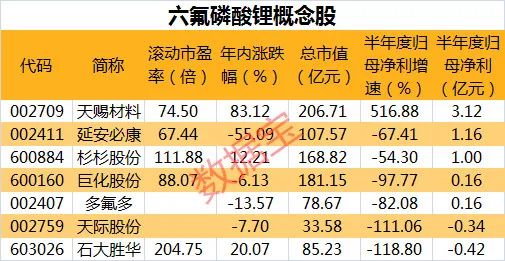 数据宝统计显示,A股市场目前共有7家生产六氟磷酸锂的公司。半年报数据显示,天赐材料、延安必康和杉杉股份盈利超亿元,天际股份和石大胜华业绩出现亏损。除天赐材料外,其他6家公司归母净利润均出现不同程度下滑。