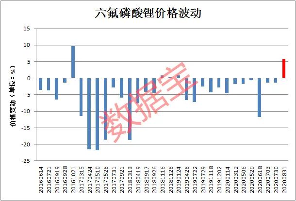 据中国化学与物理电源行业协会报价显示,8月底,六氟磷酸锂开始提价,涨幅约5000-7000元/吨,最新价格为7.2-7.5万元/吨,此次提价幅度是近3年来提价幅度最高的一次。除该行业协会统计的报价外,其他供应商的报价均有不同程度提价。