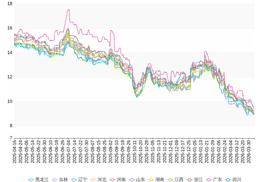 财联社注意到,供需失衡是本轮价格持续下跌的核心矛盾。从供给端看,养殖端压栏惜售情绪仍在消退,全国生猪出栏均重仍维持在126公斤以上的高位,随着气温回升,肥猪需求刚需不足,养殖端压栏信心不足,市场被动去产能意愿增强,多方养殖主体积极出栏。同时需求端,春节后进入传统消费淡季,清明备货拉动有限,叠加禽肉替代品分流,终端白条走货持续疲软,鲜品猪肉需求缺乏有效支撑。