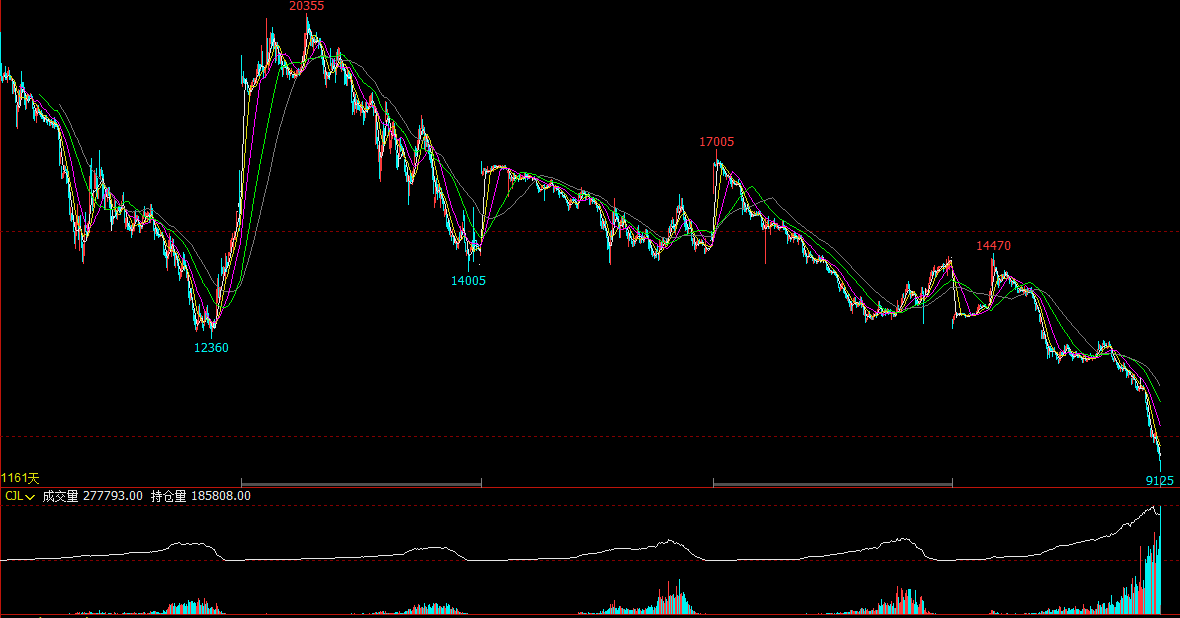 今日生猪期货盘面全线走弱,主力合约早盘最低触及9125元/吨,创下上市以来历史新低,截至午间收盘,跌幅尽管有所收窄,但仍处于周期下行期的深度亏损磨底阶段。