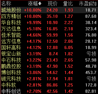 二级市场上,截至发稿,华为概念股逆势上攻,城地股份、四方精创、华自科技涨停,万达信息、远方信息、国轩高科、佳禾智能涨逾4%,鹏鼎控股、博创科技等多股均不同程度上涨。