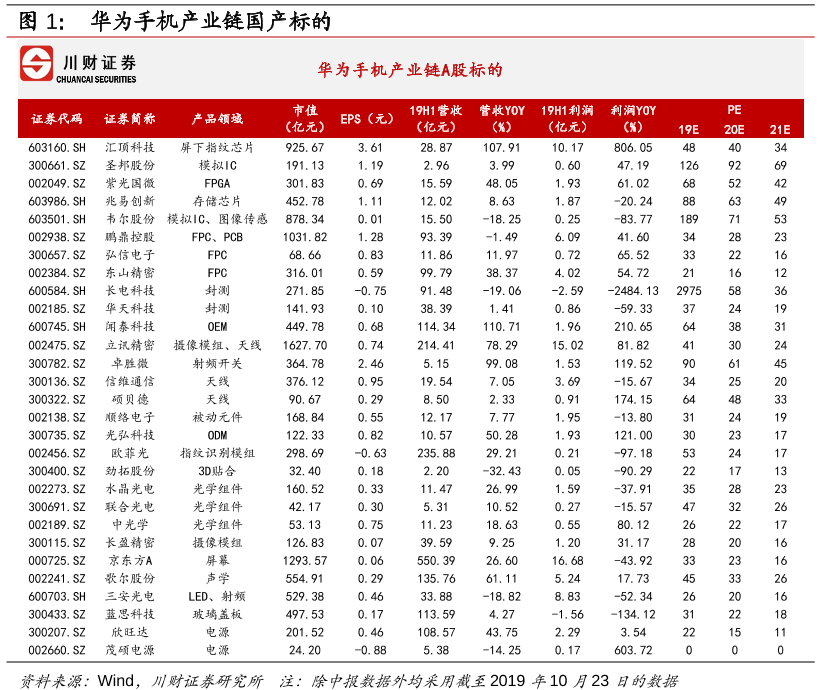 华泰证券认为, 我们将华为生态合作伙伴分为两类,一类是华为供应商,一类是与华为从 各方面展开合作的厂商。华为供应商建议关注中科创达、润和软件、虹软科技。华为合作伙伴建议关注四维图新、用友网络、长亮科技、太极股份、 启明星辰、科大讯飞、数字认证、诚迈科技。