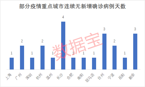 此外,温州、南阳、驻马店、长沙等其他新冠肺炎感染患者较多的城市昨日均无新增确诊病例,长沙已连续4日未出现新增确诊病例。