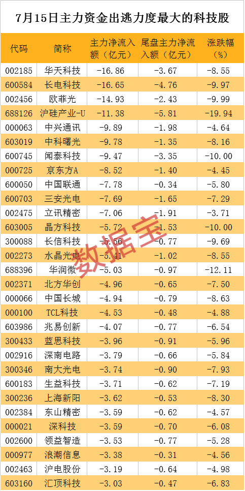 千亿芯片龙头重挫 科技股资金出逃名单曝光 大跌原因来了
