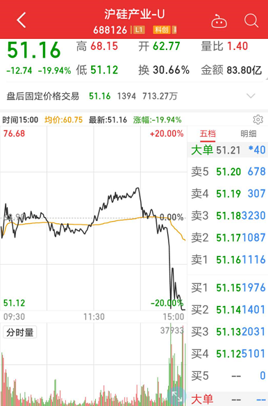 科技股成为今天大跌的重灾区,芯片、半导体概念股遭遇重挫。今年上市的科创板牛股沪硅产业一度闪崩,股价在6分钟内崩跌超17%。午后,沪硅产业股价从最高涨超6%至收盘逼近跌停,半个交易日暴跌26%(从最高点至收盘)。盘后龙虎榜数据显示,今日上榜的卖一为机构席位,共卖出1.5亿元。