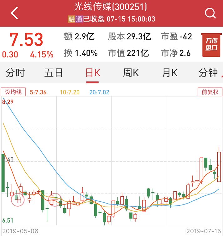 14日晚间,光线传媒发布半年报显示,上半年净利润8500万-1.05亿元,同比下降95.02%-95.97%。但光线传媒14日股价表现强势,录得一根大长阳,收涨4.15%。