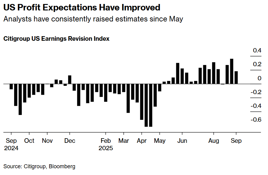 美国劳动力市场近期的严重放缓重新引发了市场对美国经济停滞的担忧,但在关税带来的冲击小于此前市场所担忧的情况之后,分析师们仍在继续上调美国企业盈利预期。