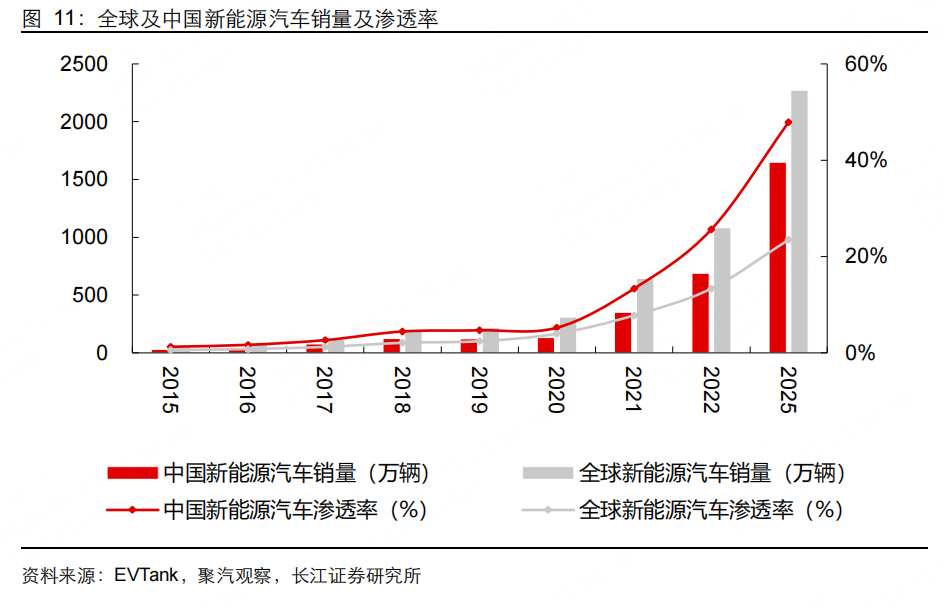 2026年我国新能源汽车销量有望达到2000万辆,国内市场渗透率有望达到57%。