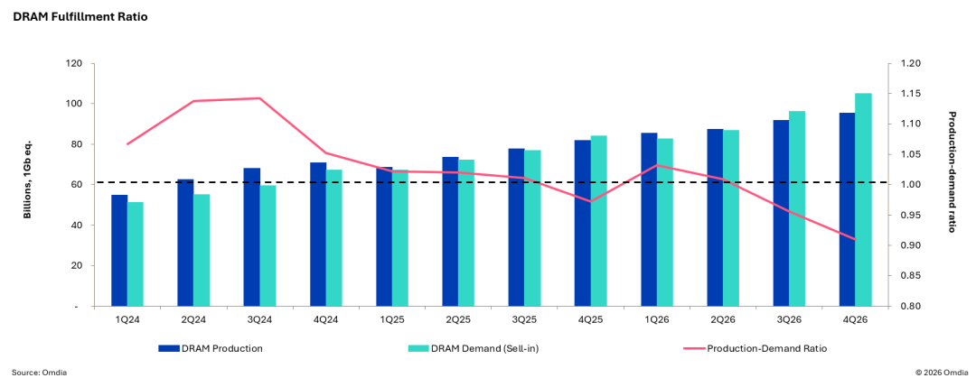 Omdia:预计2026年存储供应短缺进一步加剧 DRAM及NAND价格继续走高