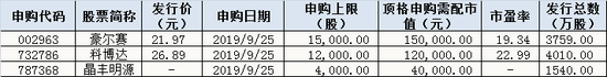下周新股申购情况一览