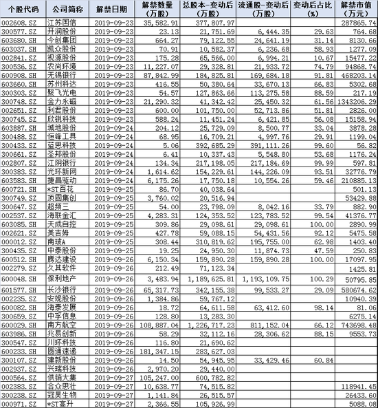 下周解禁个股