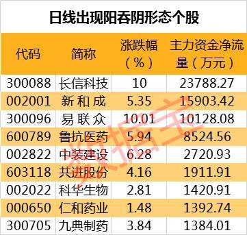 最新数据显示,两市共有54只个股日K线出现阳吞阴形态,当天涨幅最大的是易联众、长信科技、中装建设(002822),涨幅分别为10.01%、10%、6.28%。