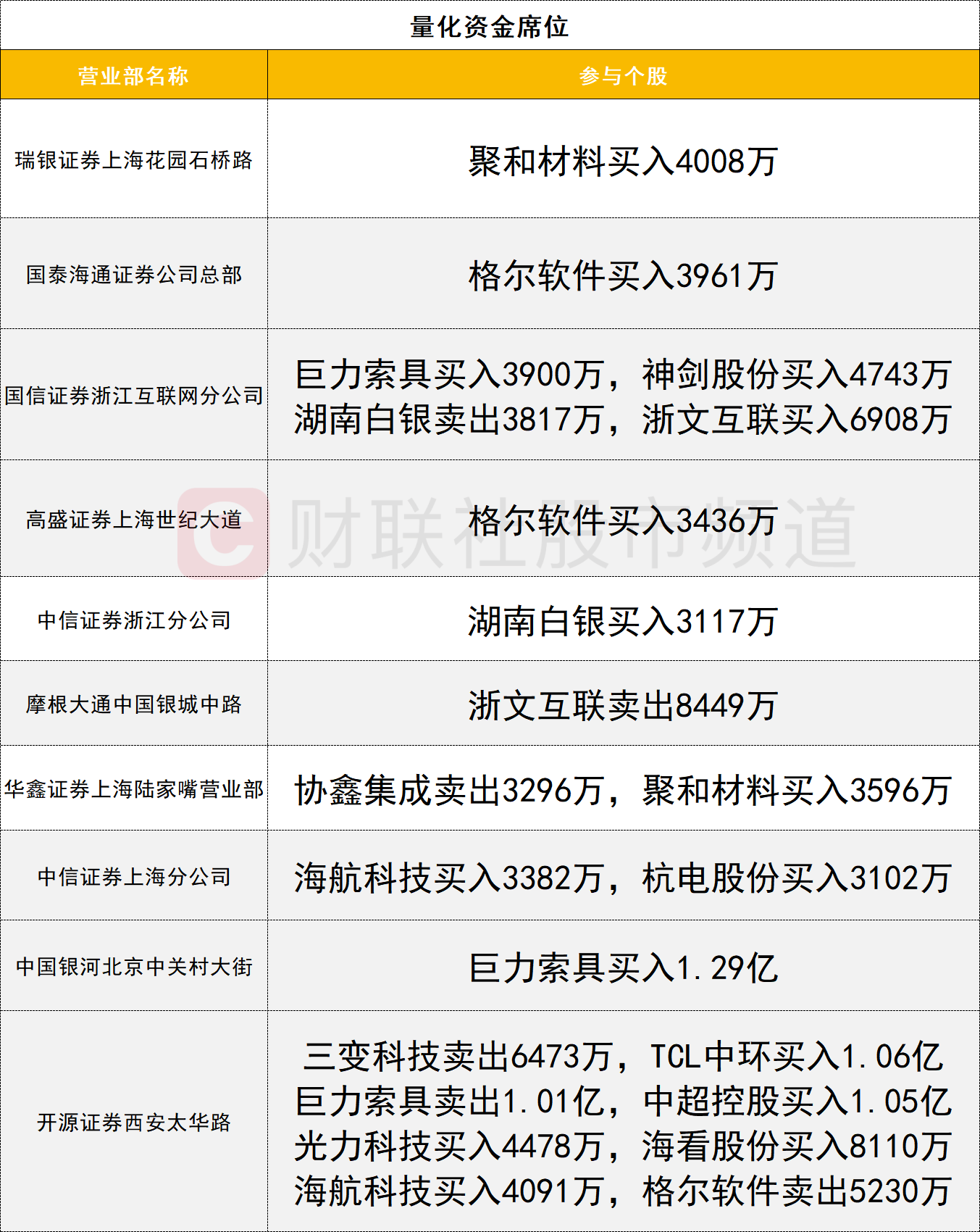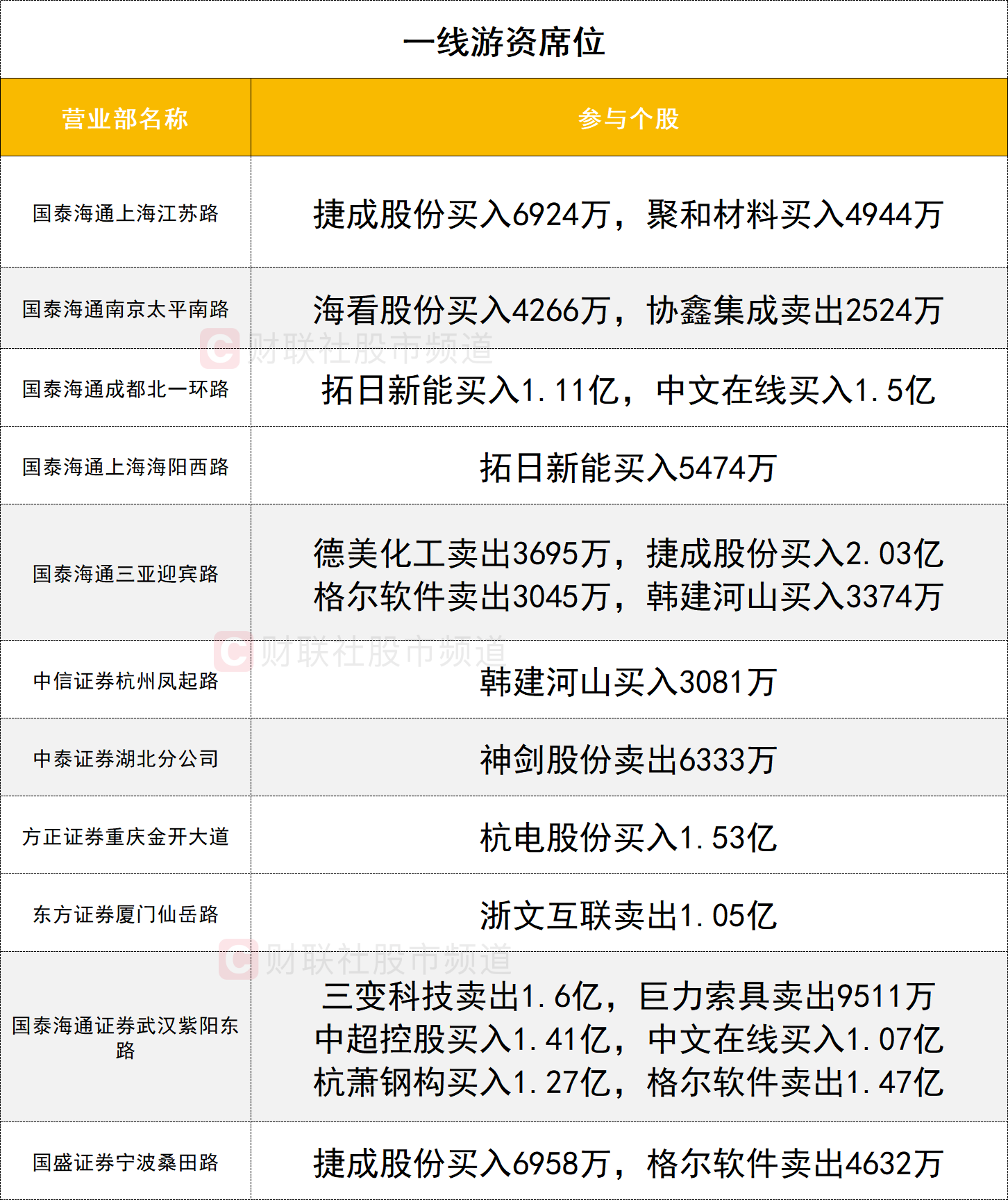 一线游资活跃度有所提升,AI应用概念股捷成股份今日20cm涨停,获三家一线游资(国泰海通证券三亚迎宾路、国泰海通证券上海江苏路、国盛证券宁波桑田路)合计买入3.41亿。