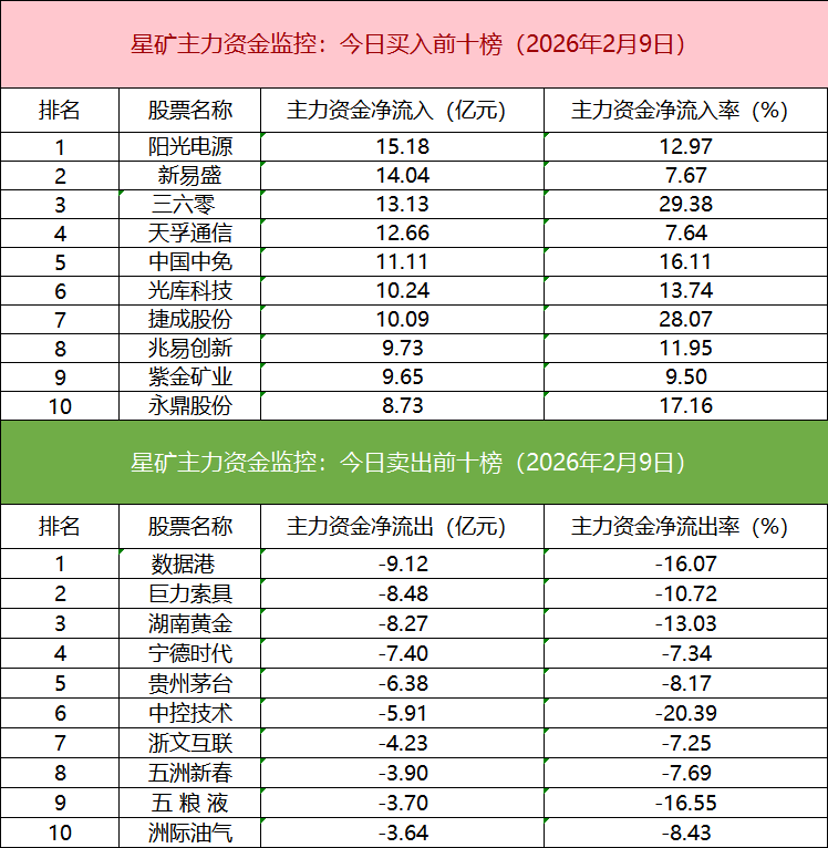 从个股主力资金监控数据来看,主力资金净流入前十的个股所属板块较为分散,阳光电源净流入居首。