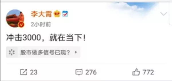 今日盘前,英大证券李大霄喊出了“冲击3000,就在当下”的口号。