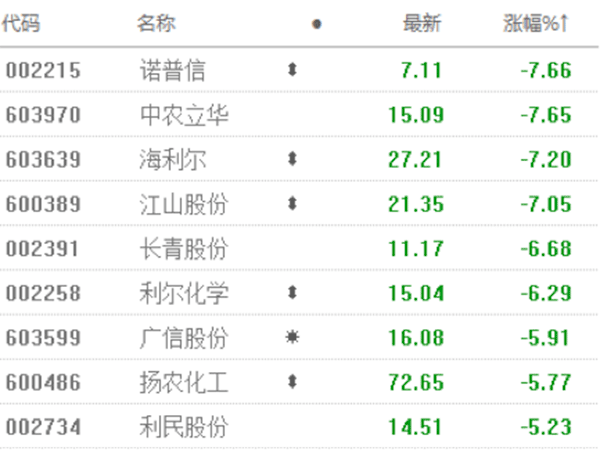 截至午间收盘,诺普信、中农立华等农药股跌逾7%,丰乐种业、登海种业等种业股跌逾3%。