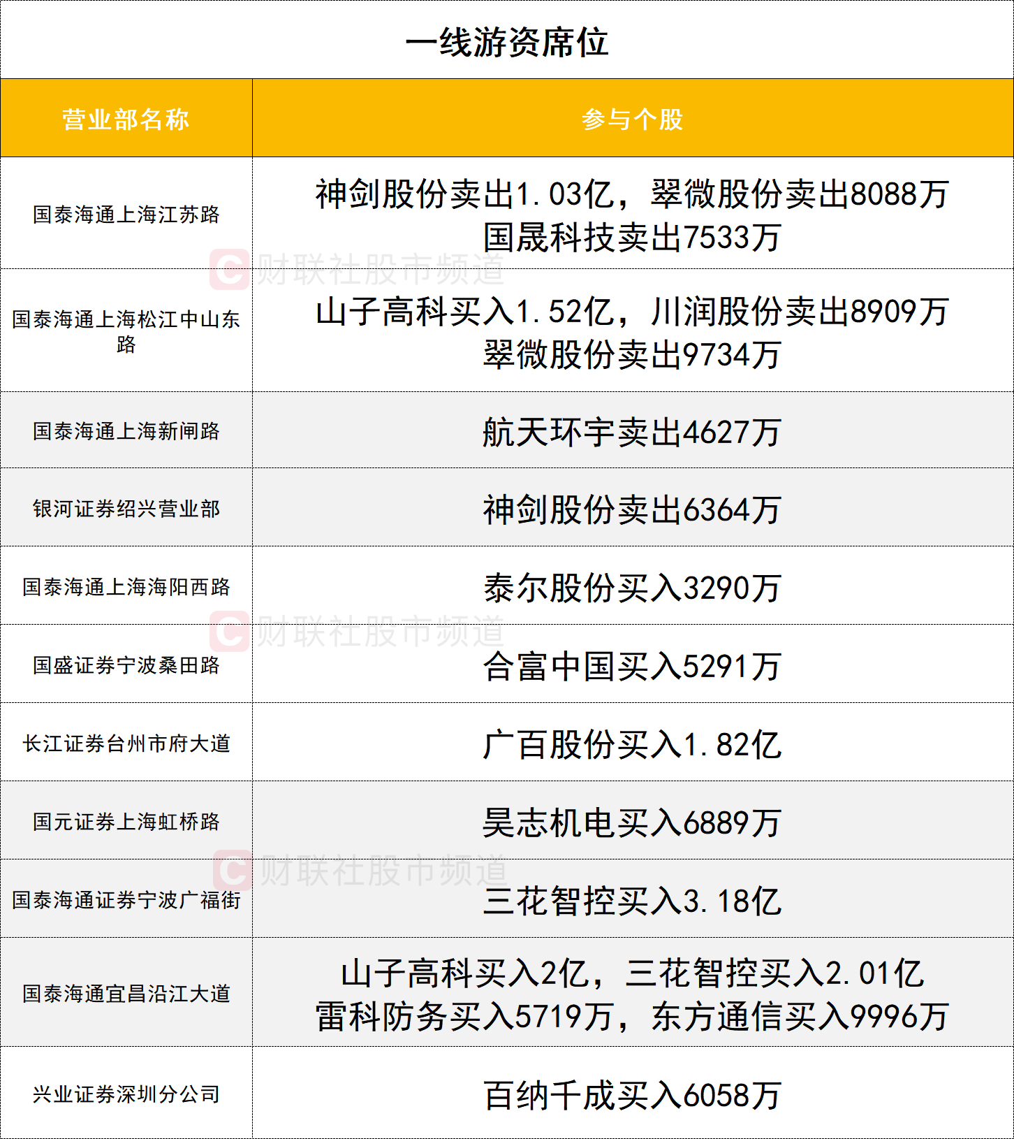 一线游资活跃度较高,机器人概念持续爆发,人气股三花智控获两家实力游资(国泰海通证券宁波广福街、国泰海通证券宜昌沿江大道)分别买入3.18亿、2.01亿。山子高科获两家实力游资(国泰海通证券宜昌沿江大道、国泰海通证券上海中山东路)分别买入2亿、1.52亿。