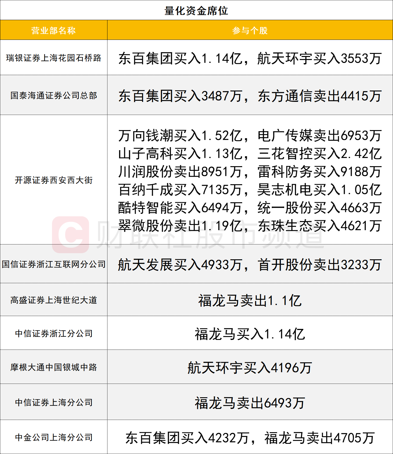 量化资金活跃度有所提升,三花智控获一家量化资金(开源证券西安西大街)买入2.42亿,同时深股通买入3.19亿。福龙马走出3天2板的强势表现,却遭量化资金的激烈博弈,其中一家量化资金(中信证券浙江分公司)买入1.14亿,三家量化资金(高盛证券上海世纪大道、中信证券上海分公司、中金公司上海分公司)合计卖出3.35亿。