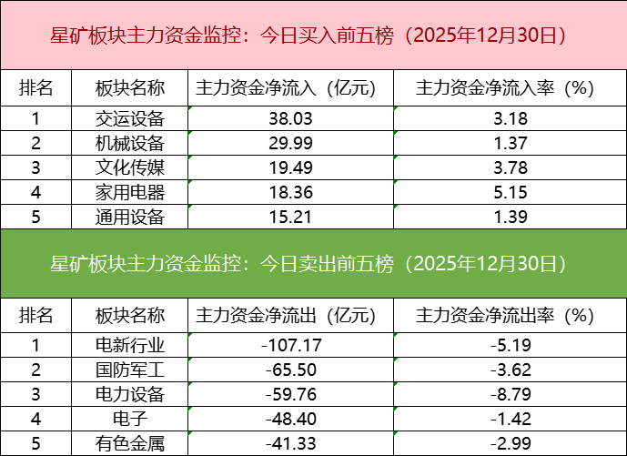 从主力板块资金监控数据来看,交运设备板块主力资金净流入居首。