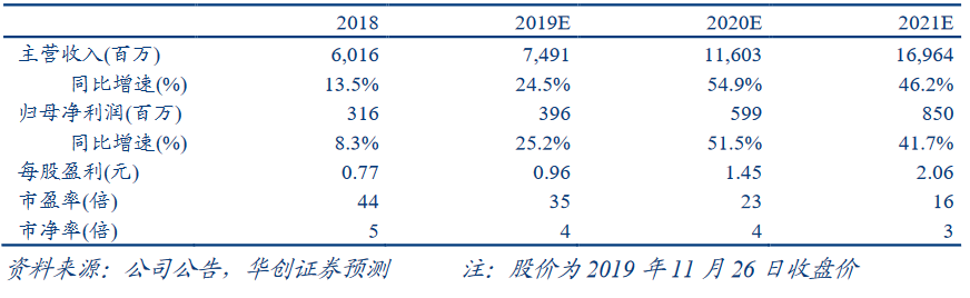 维持公司19年归母净利润预测为3.96亿,同时上调2020-2021年盈利预测至5.99亿、8.50亿元(原预测为4.85亿、5.89亿元),对应PE分别为35倍、23倍、16倍,参考华宇软件、东华软件、北信源3家可比公司平均估值32倍PE,综合给予公司2020年32倍PE,上调目标价至46.6元。