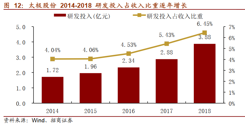 公司今年三季度完成10亿元可转债发行,所募集资金将用于云计算、自主可控、工业互联网等项目的研发投入,公司相关业务发展前景可期。近年来公司研发投入高速增长,研发投入占收入比重逐年提高,由2014年4.04%提升至2018年的6.45%,为公司未来发展提供有力保障。