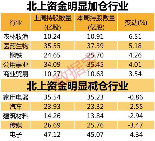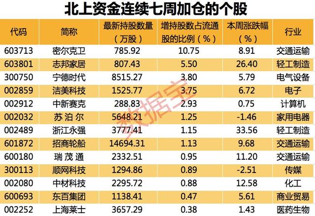 上述加仓行业中,纺织服装行业已连续三周获北上资金加仓,持股数量比三周前增加6.49%。