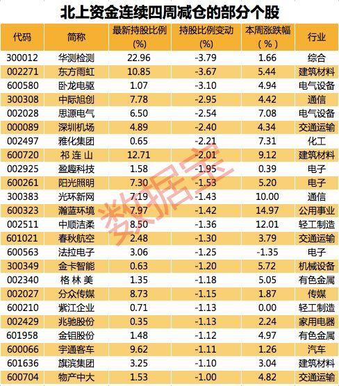 108股遭北上资金连续四周卖出