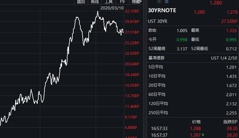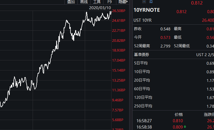 另外,周二美债收益率从历史低点大幅反弹,3月期美债收益率涨8.1个基点报0.467%,2年期美债收益率涨14.9个基点报0.55%,3年期美债收益率涨19个基点报0.629%,5年期美债收益率涨19.3个基点报0.675%,10年期美债收益率涨26.4个基点报0.812%,30年期美债收益率涨27.5个基点报1.28%。