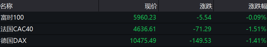 在美股开盘之前,欧洲股市也也全线高开。一度大涨近4%,不过,晚间美股翻绿后,欧洲几大股指也被带沟里了。今日,欧洲三大股指集体收跌,德国DAX指数跌1.4%,法国CAC40指数跌1.51%,英国富时100指数跌0.09%。