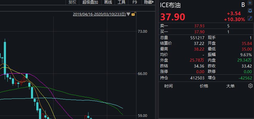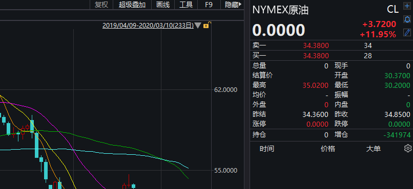 原油方面,在经历史诗级暴跌之后,NYMEX原油期货今日收涨11.95%报34.85美元/桶,ICE布油涨10.45%报37.95美元/桶。