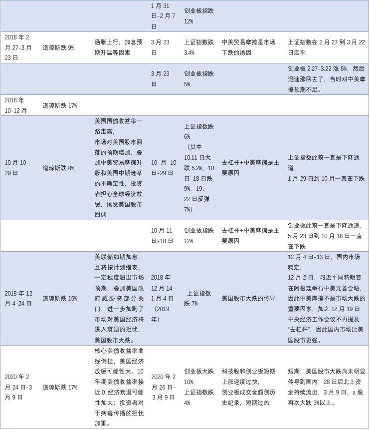 银河证券认为,由于欧美股市暴跌,美国股市在小跌时,影响不显著,但是当短期累计跌幅达 9%以上时,对中国股市的传导效应较为明显,往往会诱发短期大跌。近期,创业板和科技股由于短期上涨过快,创业板成交金额达到历史记录,即使在 2 月 26 日28 日出现两次大的调整,但是,创业板和科技股的短期调整压力依然存在。